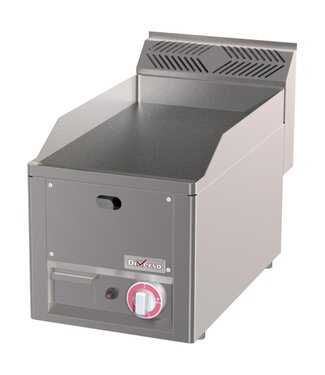 Gladde bakplaat op gas van Diverso By Diamond. Uitgerust met gestabiliseerde vlambranders van 4 kW. De plaat heeft effectieve afmetingen van 320x480mm. Wordt geleverd inclusief een schraper om de bakplaat mee schoon te maken.