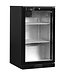 Energiezuinige horeca barkoelkast met een zwarte behuizing, dubbel gehard glas, aluminium interieur en witte draadplanken. Ideaal voor presentatie van frisdrank of bier in drukke bars en cafés. Uitgerust met geventileerde koeling voor een snelle pull-down en gelijkmatige temperatuurverdeling. Makkelijk instelbare temperatuur met de elektronische thermostaat. Compleet geleverd met twee instelbare draadplanken om de barkoeling naar wens in te delen.