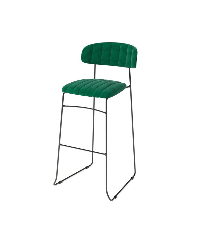Stijlvolle barstoel Mundo met velours zitting in groene kleur. Fraai design - ideaal voor restaurants, bars, hotel lobby's en andere horeca gelegenheden. De zitting is bekleed met comfortabel kunstleder en geruit stiksel met een luxe uitstraling. De zitting is bekleed met comfortabel velours en geruit stiksel voor een luxe uitstraling. Uitgevoerd met een stevig stalen frame dat zorgt voor stabiliteit en lange levensduur. De barstoelen zijn stapelbaar waarmee ze compact en ruimtebesparend kunnen worden opgeborgen.