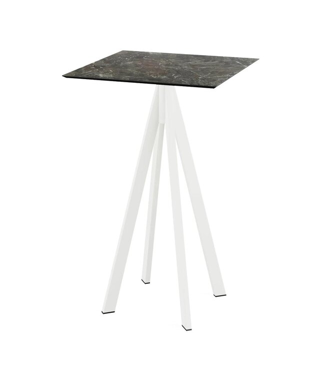 Infinity Bartafel Galaxy Marble met wit frame en een vierkant tafelblad gemaakt van HPL (High Pressure Laminate). Vierkante bartafel met een marmerlook tafelblad geschikt voor moderne restaurants en gezellige terrassen. Na gebruik klapt u de Infinity bartafel weer eenvoudig in. Ruimtebesparend wanneer u de statafel niet meer gebruikt. Deze inklapbare tafel is ook beschikbaar met frame in het zwart of zandkleur/beige, een tafelblad met houtlook of marmerlook. Mix & match de statafels zodat ze aansluiten op uw interieur. Word gedemonteerd geleverd en is eenvoudig in elkaar te zetten.