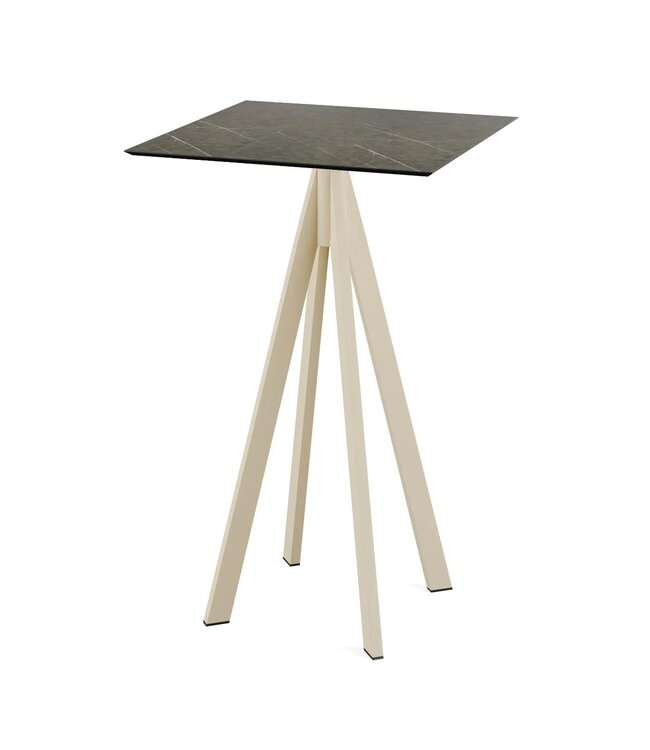 Infinity Bartafel Midnight Marble met beige frame en een vierkant tafelblad gemaakt van HPL (High Pressure Laminate). Vierkante bartafel met een marmerlook tafelblad geschikt voor moderne restaurants en gezellige terrassen. Na gebruik klapt u de Infinity tafel weer eenvoudig in. Ruimtebesparend wanneer u de statafel niet meer gebruikt. Deze inklapbare tafel is ook beschikbaar met frame in het zwart of wit, een tafelblad met houtlook of marmerlook. Mix & match de statafels zodat ze aansluiten op uw interieur. Word gedemonteerd geleverd en is eenvoudig in elkaar te zetten.