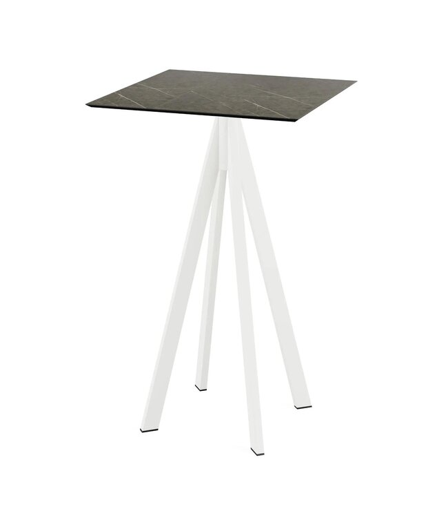 Infinity Bartafel Midnight Marble met wit frame en een vierkant tafelblad gemaakt van HPL (High Pressure Laminate). Vierkante bartafel met een marmerlook tafelblad geschikt voor moderne restaurants en gezellige terrassen. Na gebruik klapt u de Infinity tafel weer eenvoudig in. Ruimtebesparend wanneer u de statafel niet meer gebruikt. Deze inklapbare tafel is ook beschikbaar met frame in het zwart of zandkleur/beige, een tafelblad met houtlook of marmerlook. Mix & match de statafels zodat ze aansluiten op uw interieur. Word gedemonteerd geleverd en is eenvoudig in elkaar te zetten.