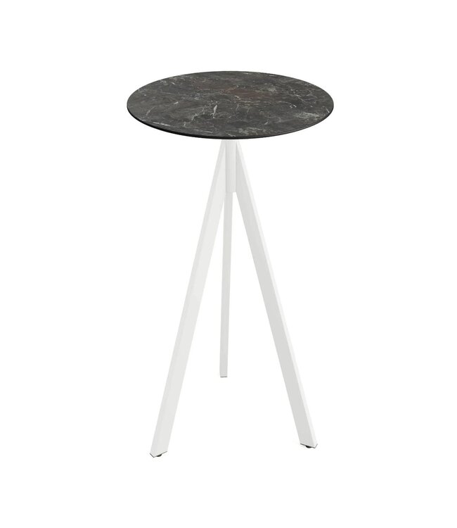 Infinity Tripod Bartafel met wit drieteens onderstel en een rond tafelblad gemaakt van HPL (High Pressure Laminate). Ronde horeca tafel met een Galaxy Marble marmerlook tafelblad geschikt voor moderne restaurants en gezellige terrassen. Na gebruik klapt u de Infinity Tripod tafel weer eenvoudig in. Ruimtebesparend wanneer u de tafel niet meer gebruikt. Deze inklapbare bartafel is ook beschikbaar met frame in het zwart of zandkleur/beige, een tafelblad met houtlook of marmerlook. Mix & match de bartafels zodat ze aansluiten op uw interieur. Word gedemonteerd geleverd en is eenvoudig in elkaar te zetten.