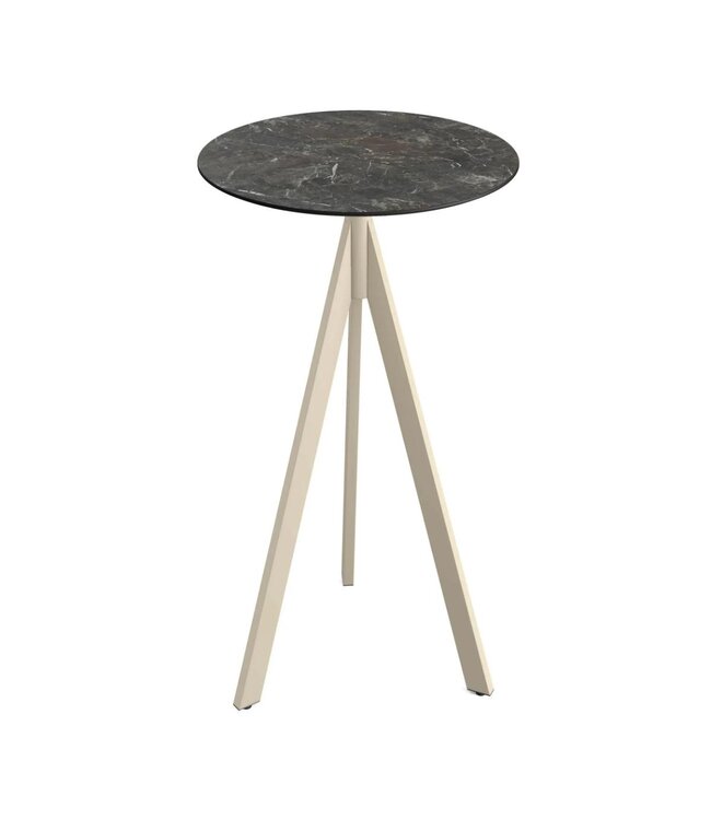 Infinity Tripod Bartafel met beige drieteens onderstel en een rond tafelblad gemaakt van HPL (High Pressure Laminate). Ronde horeca tafel met een Galaxy Marble marmerlook tafelblad geschikt voor moderne restaurants en gezellige terrassen. Na gebruik klapt u de Infinity Tripod tafel weer eenvoudig in. Ruimtebesparend wanneer u de tafel niet meer gebruikt. Deze inklapbare bartafel is ook beschikbaar met frame in het wit of zwart, een tafelblad met houtlook of marmerlook. Mix & match de bartafels zodat ze aansluiten op uw interieur. Word gedemonteerd geleverd en is eenvoudig in elkaar te zetten.