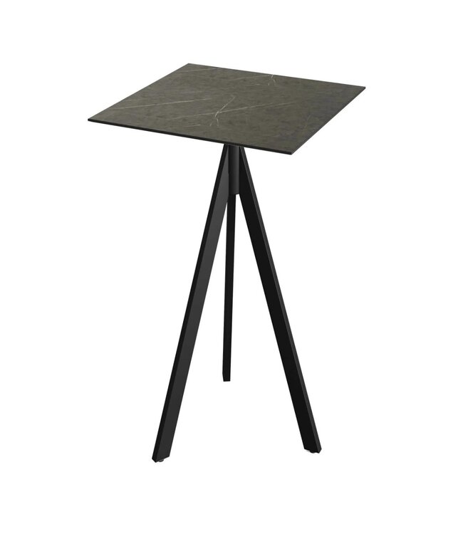 Infinity Tripod Bartafel met zwart drieteens onderstel en een vierkant tafelblad gemaakt van HPL (High Pressure Laminate). Vierkante horeca tafel met een Midnight Marble marmerlook tafelblad geschikt voor moderne restaurants en gezellige terrassen. Na gebruik klapt u de Infinity Tripod tafel weer eenvoudig in. Ruimtebesparend wanneer u de tafel niet meer gebruikt. Deze inklapbare bartafel is ook beschikbaar met frame in het wit of zandkleur/beige, een tafelblad met houtlook of marmerlook. Mix & match de bartafels zodat ze aansluiten op uw interieur. Word gedemonteerd geleverd en is eenvoudig in elkaar te zetten.