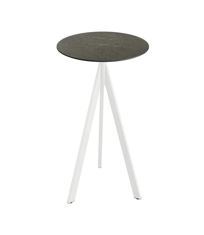 Infinity Tripod Bartafel met wit drieteens onderstel en een rond tafelblad gemaakt van HPL (High Pressure Laminate). Ronde horeca tafel met een Midnight Marble marmerlook tafelblad geschikt voor moderne restaurants en gezellige terrassen. Na gebruik klapt u de Infinity Tripod tafel weer eenvoudig in. Ruimtebesparend wanneer u de tafel niet meer gebruikt. Deze inklapbare bartafel is ook beschikbaar met frame in het zwart of zandkleur/beige, een tafelblad met houtlook of marmerlook. Mix & match de bartafels zodat ze aansluiten op uw interieur. Word gedemonteerd geleverd en is eenvoudig in elkaar te zetten.