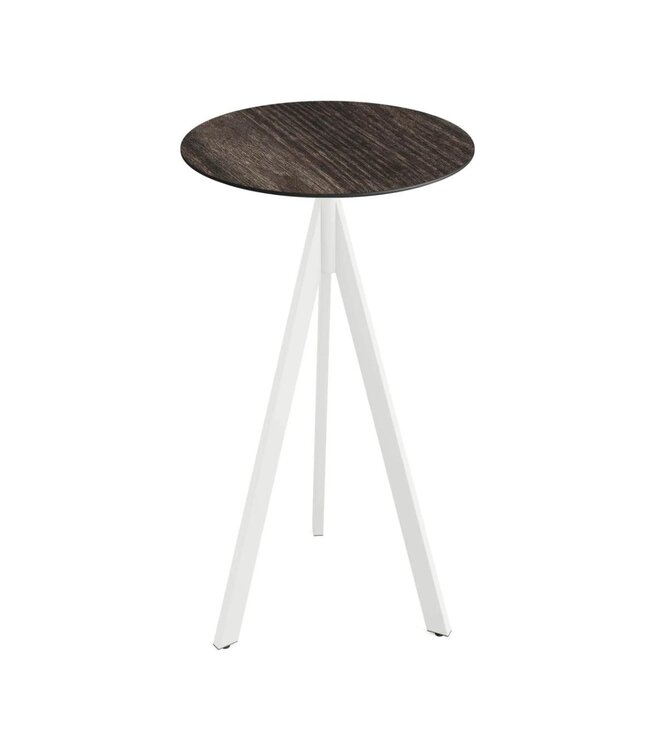 Infinity Tripod Bartafel met wit drieteens onderstel en een rond tafelblad gemaakt van HPL (High Pressure Laminate). Ronde horeca tafel met een Riverwashed Wood houtlook tafelblad geschikt voor moderne restaurants en gezellige terrassen. Na gebruik klapt u de Infinity Tripod tafel weer eenvoudig in. Ruimtebesparend wanneer u de tafel niet meer gebruikt. Deze inklapbare bartafel is ook beschikbaar met frame in het zwart of zandkleur/beige, een tafelblad met houtlook of marmerlook. Mix & match de bartafels zodat ze aansluiten op uw interieur. Word gedemonteerd geleverd en is eenvoudig in elkaar te zetten.
