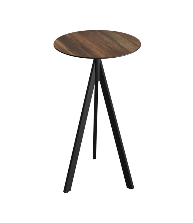 Infinity Tripod Bartafel met zwart drieteens onderstel en een rond tafelblad gemaakt van HPL (High Pressure Laminate). Ronde horeca tafel met een Tropical Wood tafelblad geschikt voor moderne restaurants en gezellige terrassen. Na gebruik klapt u de Infinity Tripod tafel weer eenvoudig in. Ruimtebesparend wanneer u de tafel niet meer gebruikt. Deze inklapbare bartafel is ook beschikbaar met frame in het wit of zandkleur/beige, een tafelblad met houtlook of marmerlook. Mix & match de bartafels zodat ze aansluiten op uw interieur. Word gedemonteerd geleverd en is eenvoudig in elkaar te zetten.