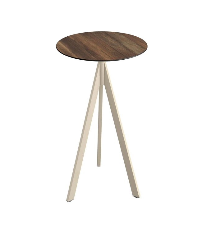 Infinity Tripod Bartafel met beige drieteens onderstel en een rond tafelblad gemaakt van HPL (High Pressure Laminate). Ronde horeca tafel met een Tropical Wood houtlook tafelblad geschikt voor moderne restaurants en gezellige terrassen. Na gebruik klapt u de Infinity Tripod tafel weer eenvoudig in. Ruimtebesparend wanneer u de tafel niet meer gebruikt. Deze inklapbare bartafel is ook beschikbaar met frame in het wit of zwart, een tafelblad met houtlook of marmerlook. Mix & match de bartafels zodat ze aansluiten op uw interieur. Word gedemonteerd geleverd en is eenvoudig in elkaar te zetten.