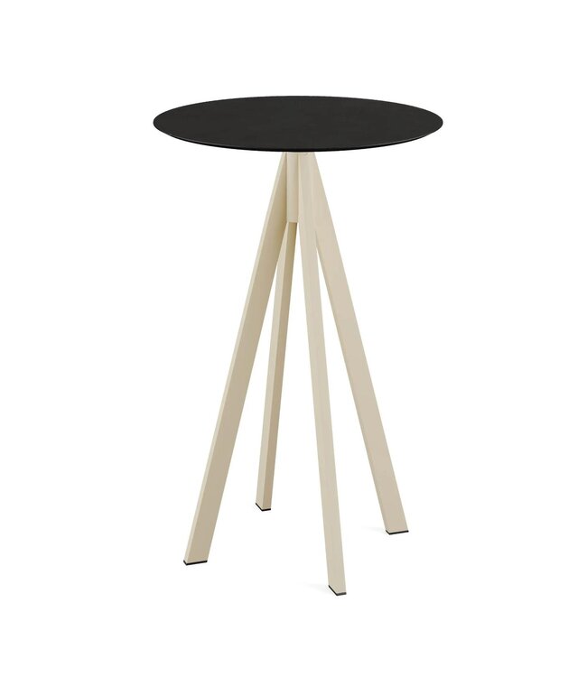 Infinity Bartafel met beige frame en een rond tafelblad gemaakt van HPL (High Pressure Laminate). Ronde bartafel met een zwart tafelblad geschikt voor moderne restaurants en gezellige terrassen. Na gebruik klapt u de Infinity tafel weer eenvoudig in. Ruimtebesparend wanneer u de statafel niet meer gebruikt. Deze inklapbare tafel is ook beschikbaar met frame in het zwart of wit, een tafelblad met houtlook of marmerlook. Mix & match de statafels zodat ze aansluiten op uw interieur. Word gedemonteerd geleverd en is eenvoudig in elkaar te zetten.