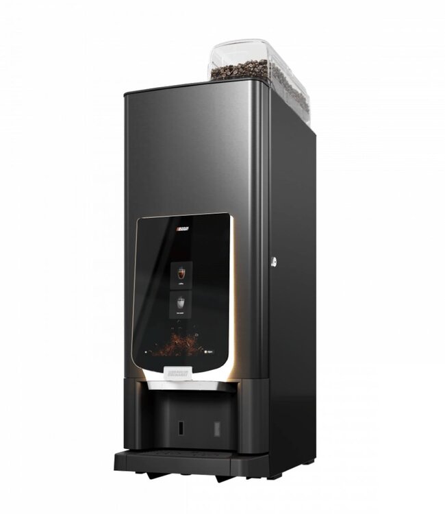 Met de Bravilor FreshGround 100 Koffiemachine met grinder haalt u een complete front-of-house koffiemachine in huis. Voor locaties met wateraansluiting is deze machine de oplossing. Voorzien van grinder, LED verlicht bedieningspaneel, lekbak, kopoplichting- en signalering, ontkalkingssignalering, reinigings- en spoelprogramma. De kleur van de LED verlichting in te stellen naar een kleur die past bij uw interieur. Elke kop koffie wordt met vers gemalen bonen gezet!