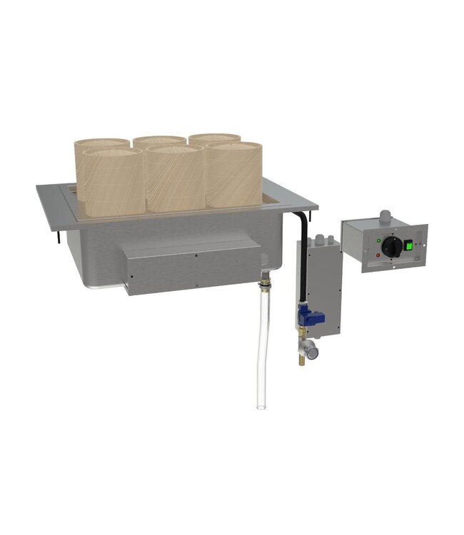 Drop-in dim sum stomer ideaal voor het bereiden van onder andere dumplings, gyoza, bao buns, divers vlees en groentes. Door middel van elektrische verwarmingselementen wordt het waterbad verwarmd. Met het plaatsen van bamboe stoommandjes boven het 55 liter waterbad worden uw producten gaar gestoomd. Inbouw dim sum stomer compleet geleverd inclusief 6x bamboe stoommandjes.