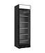 Deze zwarte display koelkast is voorzien van een dubbel 'Thermopane' beglazen deur, met aluminium kader, magnetische sluiting en een ergonomisch handvat. Ook heeft de deur een slot en een sleutel om de kast na sluiting veilig af te sluiten. Boven de deur is de koeling voorzien van lichtbak waar u uw eigen logo en marketinguitingen kwijt kunt. Uitgerust met een geforceerd koelsysteem en wordt gekoeld met R290 koelmiddel. Dankzij 2 kleine wielen aan de achterzijde is de koelkast gemakkelijk te verplaatsen. Ook heel handig voor een flexibele opstelling.