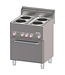 Diverso by Diamond elektrisch fornuis met 4 kookplaten uitgevoerd in staand model met elektrische convectieoven. Meer capaciteit door 4 kookplaten te combineren met een elektrische oven. Gemaakt van stevig AISI 430 roestvrij staal. Voorzien van 4 gietijzeren platen van 2kW met elk een diameter van 180mm. De elektrische oven is geschikt voor 1/1GN gastronormbakken, heeft een dubbelwandige deur die warmte binnenhoudt en temperatuurregeling van +50 tot +300 graden via 6-standen schakelaars. Voor een perfecte aansluiting in uw keuken is dit model uitgerust met verstelbare RVS poten.