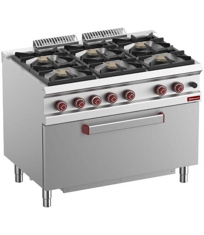 Professioneel gasfornuis uitgevoerd in AISI 304 roestvrijstaal met poten die in hoogte verstelbaar zijn. Daarnaast is het werkblad waterdicht, diepgetrokken en is er een schoorsteen aan de achterkant van RVS. Er zijn open branders van gietijzer, deze zijn waterdicht en hebben een kroon in messing. De branders worden geregeld via een gasklep en de ontsteking van de waakvlam gaat door middel van een thermokoppel aan de voorkant. De roosters aan de bovenkant zijn van geëmailleerd gietijzer en zijn vaatwasserbestendig.