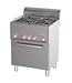 Diverso by Diamond gasfornuis met 4 branders uitgevoerd in staand model met elektrische convectieoven. Gemaakt van stevig AISI 430 roestvrij staal. Voorzien van branders van 2x 3kW en 2x 3,6kW. Op de branders zitten roosters geschikt voor pannen met een diameter van 12 mm. De elektrische oven is geschikt voor 1/1GN gastronormbakken, heeft een dubbelwandige deur die warmte binnenhoudt en temperatuurregeling van +50 tot +300 graden via 6-standen schakelaars. Voor een perfecte aansluiting in uw keuken is dit model uitgerust met verstelbare RVS poten.