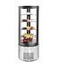 Deze gebaksvitrine is gemaakt van roestvast staal materiaal, waarvan ook de behuizing met gehard dubbel glas. De vitrine heeft een zelfsluitende deur en beschikt over geforceerde luchtkoeling met automatische ontdooiing. De compressor bevindt zich onder de koelruimte. De gebaksvitrine maakt plaats voor drie verstelbare glazen schappen en een heldere LED-verlichting aan twee kanten. De temperaturen (van 2-6°C) kunnen geregeld worden middels de digitale regelaar. Ook heeft de vitrine een display met aan/uit-knop.