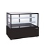 Staande en verrijdbare koelvitrine toonbank, ideaal voor het aantrekkelijk presenteren van diverse producten in de horeca. Strak ontwerp met zwarte stalen behuizing en aan vier zijden dubbel glas. Aan de achterzijde is deze koelvitrine voorzien van 2-delige schuifdeur om gemakkelijk uw voorraad aan te vullen. Met de geforceerde koeling worden koelt deze vitrine uw producten gelijkmatig van +2 tot +8 graden. Voorzien van automatische ontdooiing waarmee schoonmaken makkelijker is. Dankzij de inbegrepen wielen is de koelvitrine gemakkelijk te verplaatsen voor reiniging of herinrichting.