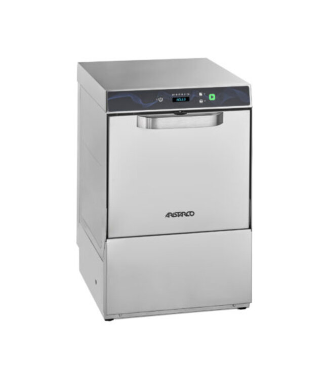 Professionele glazenspoelmachine van Italiaanse fabricaat. Aristarco model Orion 35.25 in een basic uitvoering inclusief naglansdispenser. Uitgerust met Electronic Smart Interface (ESI) met LED display om de machine eenvoudig mee te bedienen. Compleet geleverd inclusief 2 glazenkorven, 1 bordenkorf en 1 bestekmand.