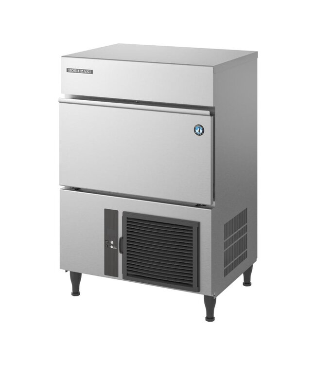 Professionele ijsblokjesmachine van het merk Hoshizaki gemaakt van RVS. Dit model heeft een productiecapaciteit van 56 kilo per 24 uur en een bunkercapaciteit van maar liefst 26 kilo. De ijsblokjes zijn cilindervormig en hebben de volgende afmetingen: diameter 37 mm, hoogte 45 mm.
