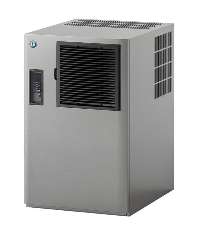 Professionele ijsblokjesmachine van het merk Hoshizaki gemaakt van RVS. Dit model heeft een productiecapaciteit van 100 kilo per 24 uur en er zijn separate bunkers voor verkrijgbaar. De ijsblokjes zijn rechthoekig en hebben de volgende afmetingen: breedte 28 mm, diepte 28 mm, hoogte 23 mm (M).Â