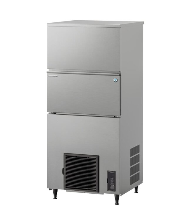 Professionele ijsblokjesmachine van het merk Hoshizaki uitgevoerd in RVS. Dit model heeft een productiecapaciteit van 180 kilo per 24 uur en een bunkercapaciteit van maar liefst 110 kilo. De ijsblokjes zijn rechthoekig en hebben de volgende afmetingen: breedte 28 mm, diepte 28 mm, hoogte 23 mm (medium).