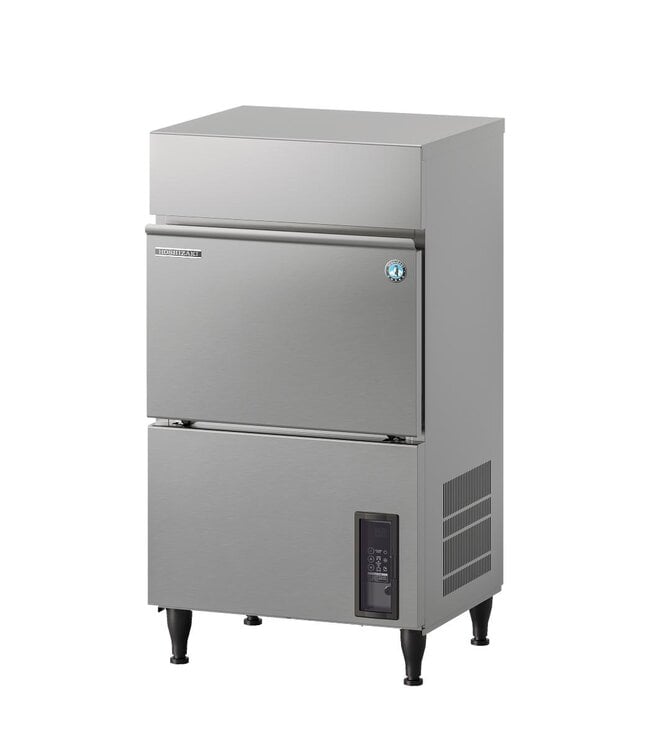 Watergekoelde ijsblokjesmachine van het merk Hoshizaki, gemaakt van RVS. Dit model heeft een productiecapaciteit van 50 kilo per 24 uur en een bunkercapaciteit van maar liefst 18 kilo. De ijsblokjes zijn rechthoekig en hebben de volgende afmetingen: breedte 28 mm, diepte 28 mm, hoogte 32 mm (large).