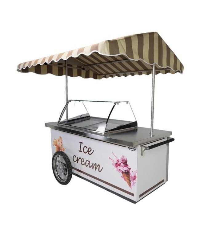 Verkoop ijsjes op locatie met de mobiele IJskar Rhodos. Bied uw klanten een heerlijke ijstraktatie op zonnige en zomerse dagen. Dankzij het verrijdbare ontwerp is deze schepijswagen flexibel inzetbaar op terrassen, evenementen, winkelcentra of zelfs aan huis!