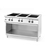 Met dit 6-pits inductiefornuis warm je een wok of een grote pan direct op. Het fornuis is uitgerust met drie inductieplaten van 5kW, drie platen van 3,5kW en zijn geschikt voor pannen met een bodemdiameter van 16 tot 26cm. De kookplaat is gemaakt van 5mm dik gehard glas. Regel de temperatuur van elke plaat eenvoudig via eigen bedieningsknop met 11 verschillende niveaus. Dankzij het RVS frame is het een stevig fornuis die belast kan worden tot 150kg. Het frame heeft een grote opbergruimte voor potten, pannen en andere accessoires. Bovendien zijn de poten verstelbaar tot ±30mm.