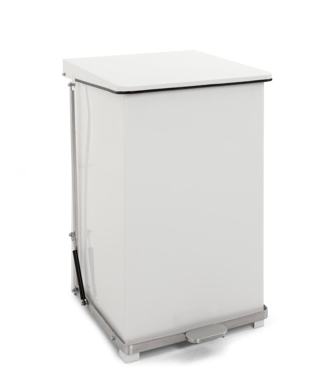 Grote professionele en robuuste pedaalemmer voor intensief en industrieel gebruik. Voorzien van gedempt sluitend deksel en zakhouder. Deze pedaalemmer staat op pootjes en is conform de HACCP richtlijnen.