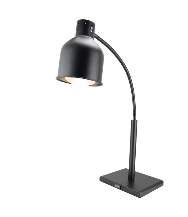 Infrarood keuken warmtelamp met ijzeren frame, lampenkap en flexibele arm zodat de lamp nauwkeurig schijnt op uw gerecht. Ideaal om eten warm te houden tussen het bereiden en serveren in de horeca. Stijlvolle lamp geschikt voor op de toonbank maar ook bij buffetten. Voorzien van een antiroestcoating, simpele en gebruiksvriendelijke schakelaar. Wordt geleverd met lampen bestand tegen versplintering en een 1500 mm lange stroomkabel.