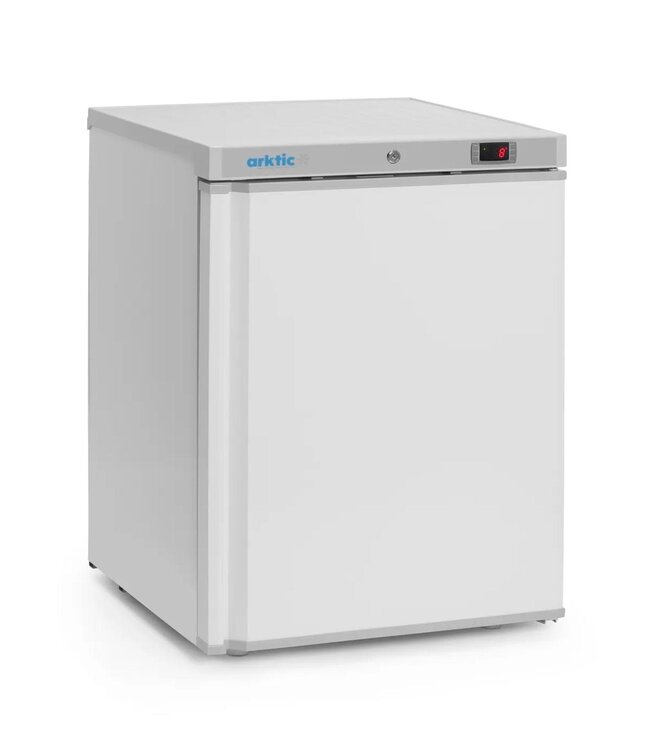 Lage energiezuinige koelkast met witte stalen behuizing voor een compacte opslag in de horeca. Arktic koelkast ideaal voor onder een werktafel, bar of op een hotelkamer. Uitgerust met een statische koeling ondersteund door een ventilator waarmee producten op de juiste temperatuur gekoeld worden. Automatische ontdooiing en de zelfsluitende deur maken deze koelkast een efficiënte koeling. Wordt geleverd met 2 verstelbare roosters zodat u uw voorraad naar wens kunt inrichten. Dit model is ook verkrijgbaar uitgevoerd met een sterke RVS behuizing.
