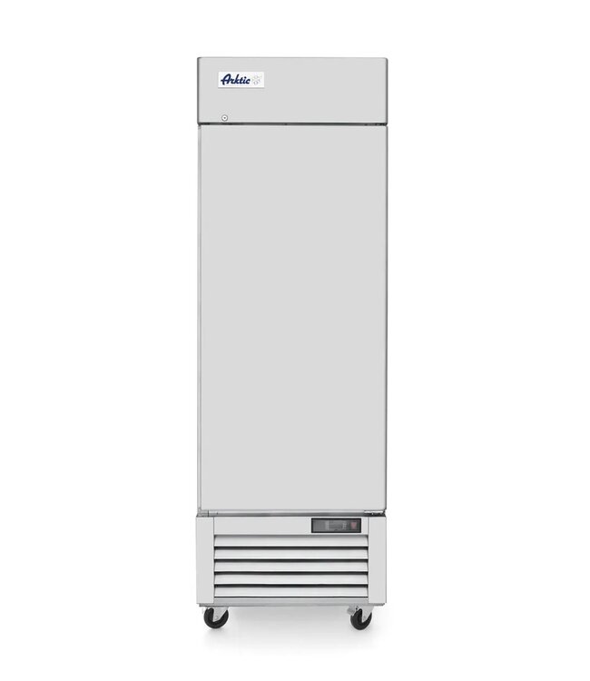 Professionele Kitchen Line koelkast van Arktic met stevige en duurzame roestvrijstalen behuizing. De zelfsluitende deur is standaard rechts scharnierend en voorzien van comfortabele gebogen handgreep. De koeling is statisch, koelt vanuit de wanden en roosters ondersteunt door een ventilator. Eenvoudig te bedienen dankzij het digitale display. In de vrieskast passen 2/1GN roosters voor een veelzijdige opslag. Wordt geleverd inclusief 4x 2/1GN schappen.