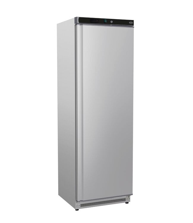 Professionele koelkast met RVS stalen behuizing voor een compacte opslag in de horeca. Met een netto inhoud van 357 liter bewaart u dranken, ingrediënten en voorbereid voedsel overzichtelijk en binnen handbereik. Uitgerust met een statische koeling waarmee producten op de juiste temperatuur gekoeld worden. Word geleverd met 4 roosters zodat u uw voorraad naar wens kunt inrichten. Deze staande koelkast heeft een temperatuurbereik van +2 tot +8 graden. Standaard is de deur rechts scharnierend. Dit model is ook verkrijgbaar uitgevoerd met een witte stalen behuizing.