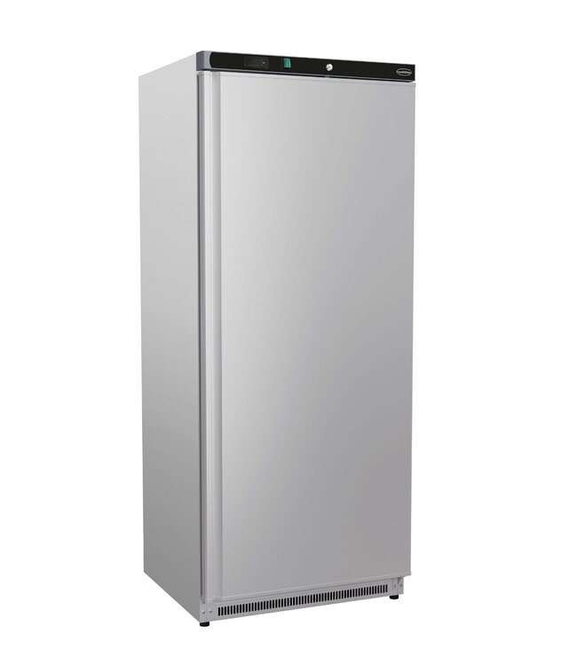 Hoge koelkast met RVS behuizing voor een compacte opslag in de horeca. Met een netto inhoud van 543 liter bewaart u dranken, ingrediënten en voorbereid voedsel overzichtelijk en binnen handbereik. Uitgerust met een statische koeling waarmee producten op de juiste temperatuur gekoeld worden. Word geleverd met 4 roosters zodat u uw voorraad naar wens kunt inrichten. Deze staande koelkast heeft een temperatuurbereik van +2 tot +8 graden. Standaard is de deur rechts scharnierend. Dit model is ook verkrijgbaar uitgevoerd met een witte stalen behuizing.