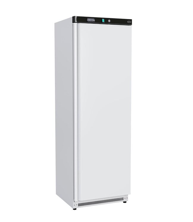 Professionele koelkast met witte stalen behuizing voor een compacte opslag in de horeca. Met een netto inhoud van 357 liter bewaart u dranken, ingrediënten en voorbereid voedsel overzichtelijk en binnen handbereik. Uitgerust met een statische koeling waarmee producten op de juiste temperatuur gekoeld worden. Word geleverd met 4 roosters zodat u uw voorraad naar wens kunt inrichten. Deze staande koelkast heeft een temperatuurbereik van +2 tot +8 graden. Standaard is de deur rechts scharnierend. Dit model is ook verkrijgbaar uitgevoerd met een sterke RVS behuizing.