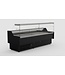 Zwarte koelvitrine in een rechthoekige uitvoering. De koelvitrine is ideaal voor winkels, snackbars, bistro's en meer. Het strakke design zorgt er voor dat de koeltoonbank opvalt en dat de producten die er in liggen mooi gepresenteerd worden. De statische koeling zorgt er voor dat de producten tussen de +1 en +10 graden gekoeld blijven. Voorzien van LED verlichting en automatische ontdooiing.