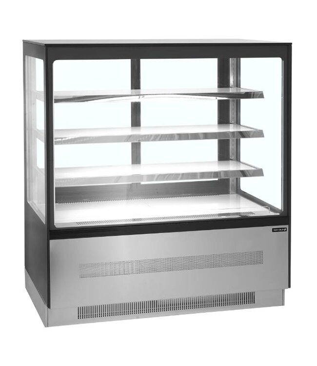 Presenteer gebak, desserts, taarten of broodjes met deze staande koelvitrine van Tefcold. Met 3 niveaus heeft deze display koelvitrine een inhoud van 390 liter. Aan de achterkant heeft de koelvitrine schuifdeuren waarmee de voorraad makkelijk weer is aan te vullen. Heeft onder elke plank ledverlichting zodat alle producten aantrekkelijk worden uitgelicht. Dankzij de dubbele beglazing blijven uw producten goed op temperatuur. Bovendien is het glas aan de voorzijde voorzien van een anticondensfront voor optimaal zicht en een zuiniger energieverbruik. Het geventileerde koelsysteem houdt uw producten langer vers ook wanneer de vitrine vaak wordt geopend. Perfect geschikt voor bakkerijen of restaurants, hotels en winkels met buffet.