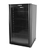 Zwarte mini koelkast DK 90 met een glazen deur, ideaal voor de horeca. Uitgerust met een statische geventileerde koeling waarmee producten op de juiste temperatuur gekoeld worden. Voorzien van automatische ontdooiing en interne LED verlichting in het plafond. Wordt geleverd met 4 verstelbare roosters zodat u uw voorraad naar wens kunt inrichten.