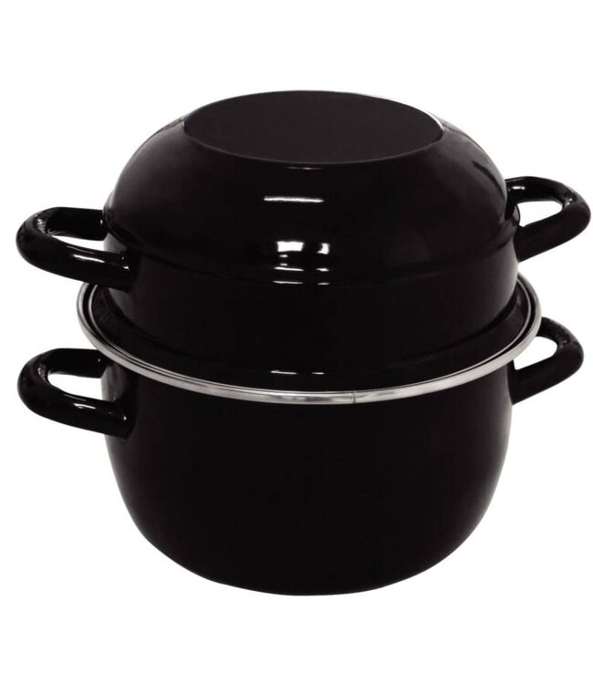 Mosselpan in een geëmailleerde uitvoering met een roestvrijstalen rand. Geschikt om direct na het koken op tafel te serveren. Geleverd met deksel dat direct kan worden gebruikt voor de lege schelpen. Oven- en vaatwasmachinebestendig. Uitvoering met een diameter van 20cm, geschikt voor een portie van 1kg. Hoogte pan 11cm, deksel 8cm.