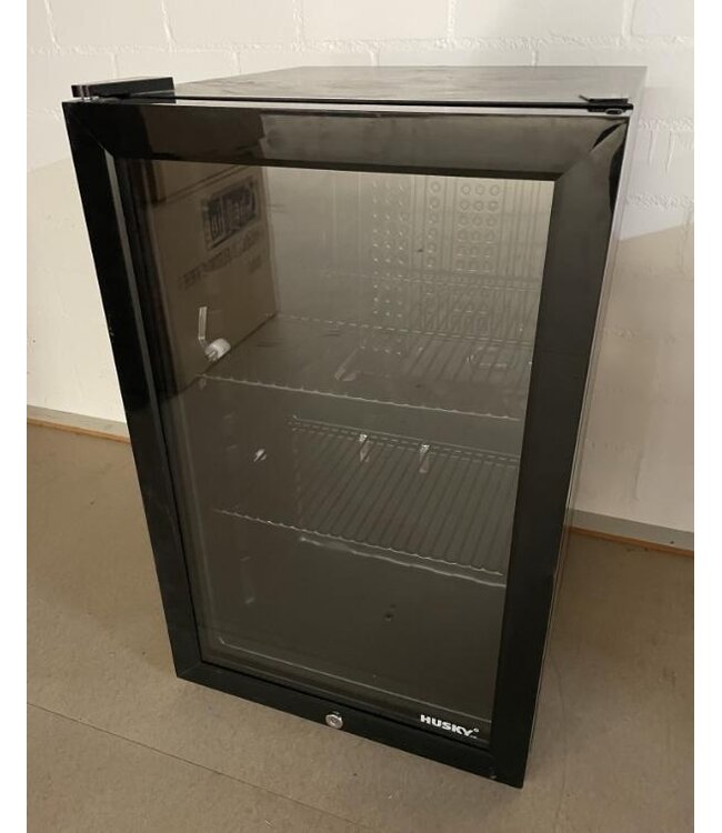 Stijlvolle compacte glasdeur koelkast met zwarte behuizing. Uitstekend geschikt voor het presenteren van blikjes of flesjes. Deze koelkast heeft een temperatuurbereik van 0 tot 10 graden. Voorzien van 1 verstelbaar rooster, automatische ontdooiing, LED-verlichting en afsluitbare deur d.m.v. slot.