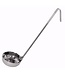 Opscheplepel van RVS met een vlakke bodem. Professioneel en duurzaam van kwaliteit. Ideaal voor het toedienen van gelijkmatige porties ingrediënten of sauzen en het uitspreiden hiervan, bijvoorbeeld voor het maken van pizza's. Gemakkelijk op te hangen door een ophanghaak. De capaciteit van de lepel is 18cl.