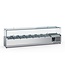 Statische opzetkoelvitrine van Ecofrost met RVS behuizing, interieur en glazen opbouw. Uitvoering met ruimte voor 7x 1/4 GN bakken, statisch koelsysteem vanuit de wanden en automatische ontdooiing.
