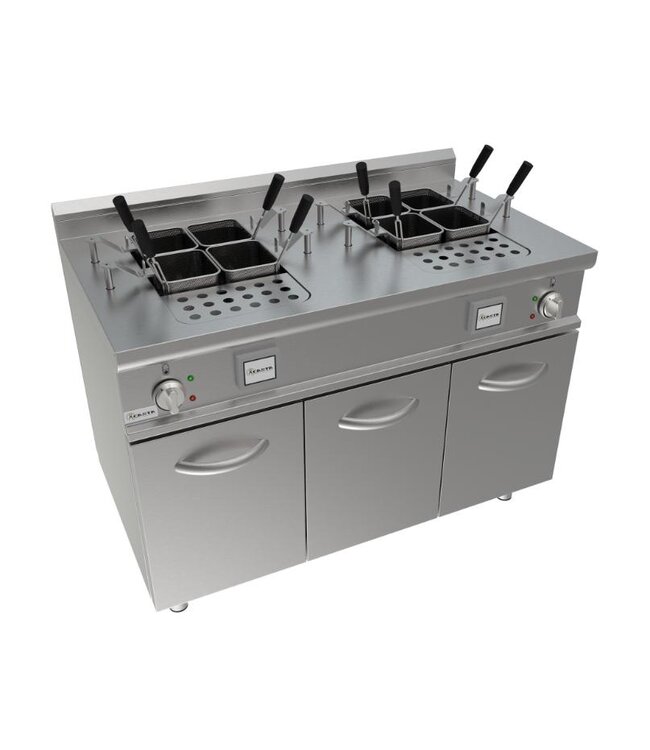 Professionele Casta Lady 700 pastakoker voor intensief gebruik in de horeca. U kunt er veel pasta tegelijk in koken maar ook noedels, rijst, groenten en andere producten. Met twee grote kuipen kan er twee keer 28 liter in deze pastakoker. Compleet met 8x 1/6GN pastamandjes.