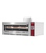 Pizza oven voor het bereiden van heerlijke pizza's. Er zijn twee stapelbare ovens aanwezig en er is er de mogelijkheid om 4 pizza's van 350mm te bereiden of één pizza met een diameter van 500mm. De kamer is gemaakt van roestvrijstaal en de bodem is vuurbestendig met een dikke isolatie van steenwol. Daarnaast is er verlichting aan de binnenkant ingebouwd en is de deur uitgevoerd in roestvrijstaal. Er is een panoramisch veiligheidsraam met warmtewerend glas. Ook is er een RVS boog en een veiligheidsthermostaat. Het bedieningspaneel is eenvoudig te beheren en er is een dubbele digitale weergave. De elektronische thermostaatregeling loopt tot 450°C. Er is gasverwarming op de bodem en dit wordt op temperatuur gebracht door de warmtewisselaars van roestvrijstaal. Deze worden gevoed door vier branders die zich bevinden in de verbrandingskamer.