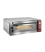 Professionele pizza oven voor het maken van vier heerlijke pizza's met een diameter tot 350mm. De oven heeft één kamer en een thermostaat. De behuizing is gemaakt van RVS. Daarnaast is de isolatie in dik glaswol en de kamer is gemaakt van gegalvaniseerd staal. De bodem heeft een vuurvaste steen en de deur heeft een handvat dat bestand is tegen de warmte. Elektrische verwarming en de temperatuurregeling gaat van +50°C tot +450°C. De veiligheidsthermostaat is standaard inbegrepen.