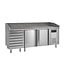 Pizzawerkbank met 2 deuren, 7 ongekoelde deeglades en granieten werkblad voor het bereiden van heerlijke pizza's. Combineert een professionele koeling met een granieten werkblad waar u elke dag pizza's op kunt bereiden. Het granieten werkblad blijft goed koel en voorkomt dat deeg aan het tafelblad blijft plakken. Stel de temperatuur makkelijk in met elektronische temperatuurregelaar. Dit model is ook verkrijgbaar inclusief opzetkoelvitrine voor toppings, bekijk hiervoor de gerelateerde producten. Op aanvraag is dit model beschikbaar met ladenblokken.