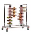 Dubbele uitvoering, verrijdbaar met vier zwenkwielen waarvan twee met rem. Hoogte 165cm, 120x60cm, gewicht 25.7kg, ruimte voor 2x 60 borden.Â