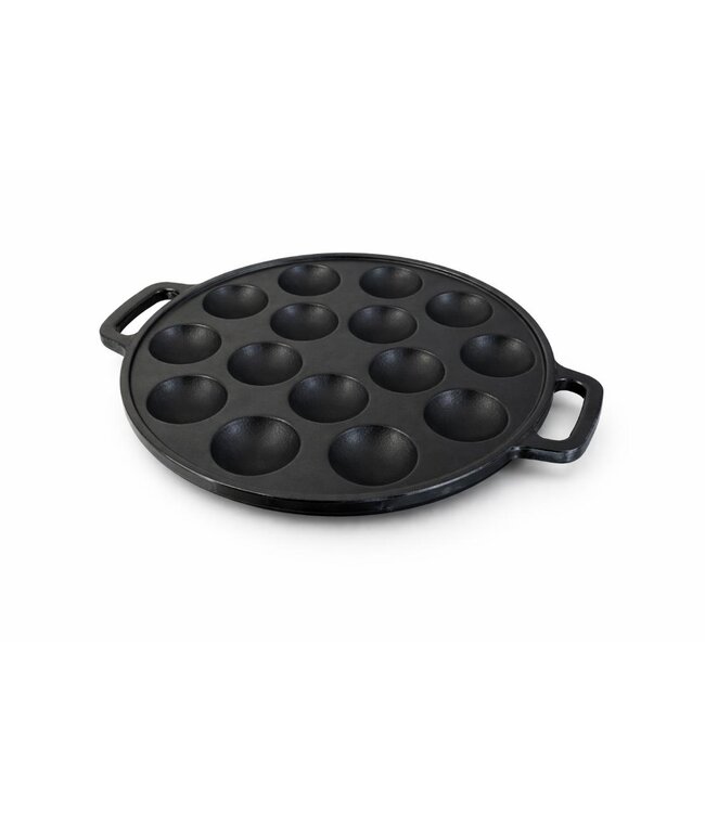 Met deze poffertjespan met 19 holtes bak je moeiteloos gelijkmatig gegaarde, goudbruine poffertjes. De pan is vervaardigd uit gietijzer, een materiaal dat bekendstaat om zijn uitstekende warmtebehoud en gelijkmatige warmteverdeling. Hierdoor blijven alle holtes op constante temperatuur en ontstaat een consistent en betrouwbaar bakresultaat.