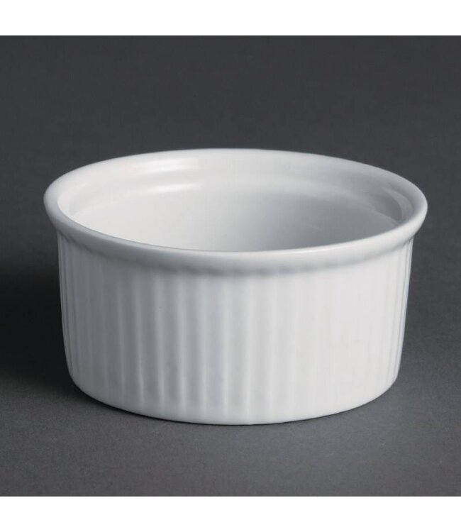 Ramekin gemaakt van porselein. Oven, vaatwasser en diepvries bestendig. Voor vele doeleinden bruikbaar, bijvoorbeeld voor sausjes of kruidenboter. Diameter 7cm, per 12 stuks geleverd.